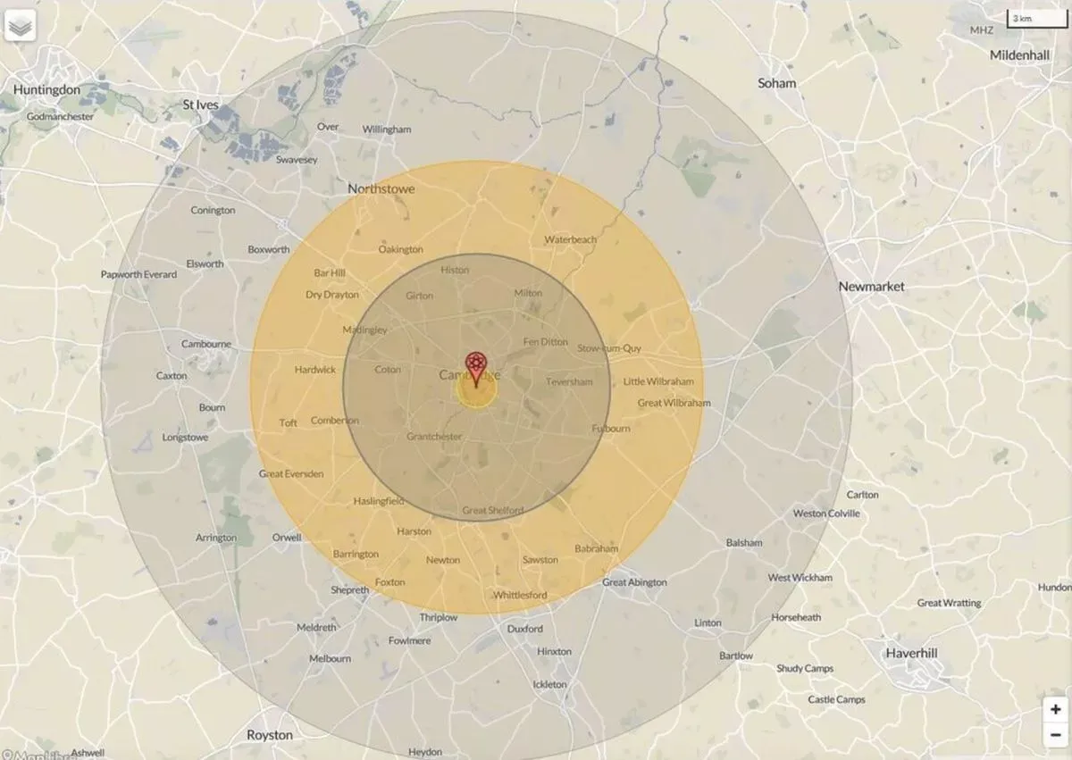 იარაღის კემბრიჯზე ჩამოგდების შედეგები კატასტროფული იქნება. ცეცხლოვანი ბურთი 2.97 კვადრატული კმ რადიუსს შთანთქავს, მათ შორის გრანჩესტერის, მილტონისა და ტევერშემის გარეუბნებს, ასევე უნივერსიტეტის მთავარ კამპუსს.